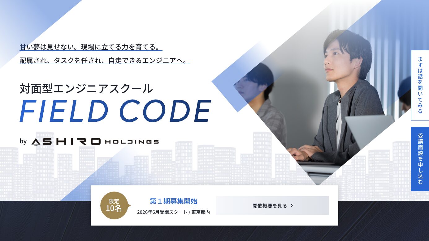 未経験から現場で自走できるエンジニアを育てる対面型エンジニアスクール「FIELD CODE」を開校しました。